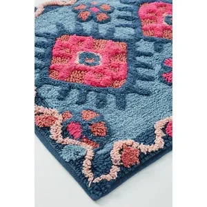 With the look and feel of a Persian rug, this hand-tufted bath mat adds warmth and bohemian-inflected charm to your home spa.