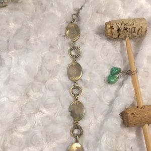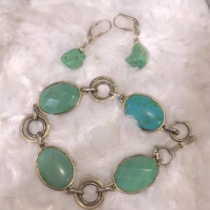 Cut stones link bracelet color aqua greens bracelet w dangle matching earrings