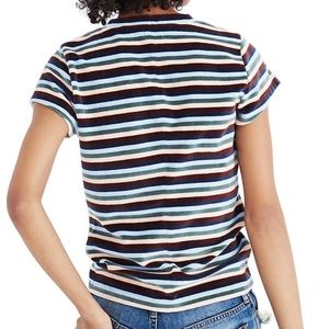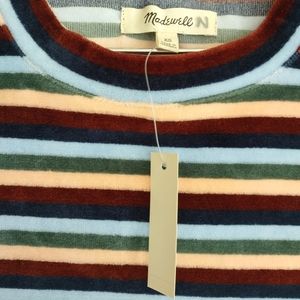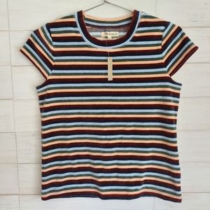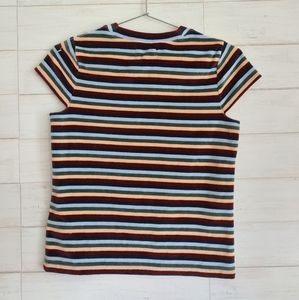 Bold stripes over plush velour make this shrunken tee look like a vintage-store score.