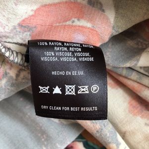 Beautiful Meadow Rue floral dress purchased from Anthropologie, in excellent condition! Lovely floral pattern of pink, orange, emerald and brown on a dark gray background. Lightly gathered 3/4 length sleeves, long slit at back closure with tortoise shell button. 32.5” long from shoulder to front bottom hem. Back hem falls about an inch lower. Looks great as a dress or as a tunic!