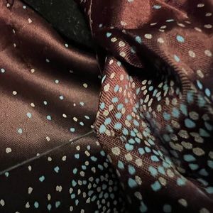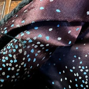 The cut is fun to wear, but works best if you’re not using your arms for something like driving. The arms are a bat-wing cut, that’s not very obvious until you have it on. I’ve worn it for a NYE wedding, but it’s mostly been stored. Please see photos, there are a few threads I’ve never cut, and the lining in one arm is becoming loose, but overall it’s in great shape.