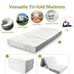 Folding Mattress, Inofia Memory Foam Tri-fold Mattress with Ultra Soft Removable