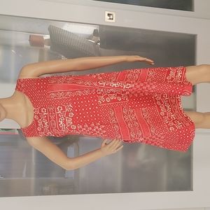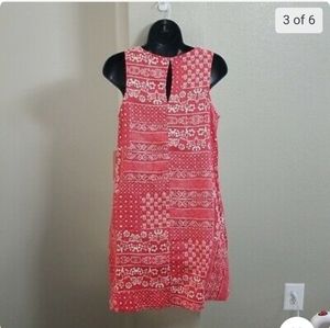 New (tag fell off after taking photos and I don't know where it went), never worn 100% linen red and cream patchwork print (similar to a bandana print) dress, and best part is it has hidden side pockets! NWOT and in pristine condition, no rips, odors or stains. A-Line shape. Would be super cute for summer with sandals, in the fall with tights or for a western-themed party with some boots and a cowboy hat. This would also be great as a maternity dress! Tag size S, but fits up to a 6 easily, approximately 17" armpit to armpit, approximately 34" shoulder to hem. Dress listed for a whole lot more elsewhere (see photo) 👀