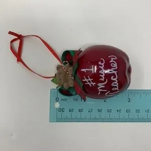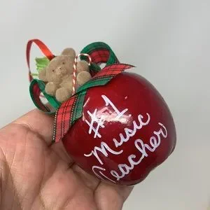 3” apple “#1 Music Teacher” Christmas tree ornament decoration vintage decor
