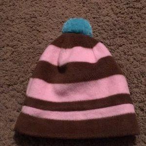 Very soft lined Vintage GAP girls Winter hat that is brown & pink stripe and has an aqua colored ball on top. The inside is solid pink. 100% polyester. Machine wash cold. Excellent used condition. Be sure and bundle to pay only one shipping fee as long as total weight is less than 5 lbs. Smoke free home