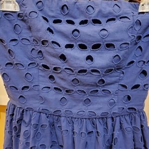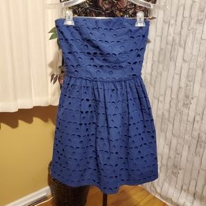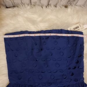 NWT. Brand new strapless Aqua navy blue eyelet dress. Features boning on the sides of the bust to help the dress stand up in the right places. Perfect for many occasions. Size M. Can be worn by itself or with a cute cardigan.