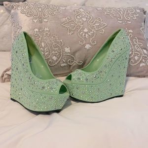 Kiss kouture size 8 pastel green blinged out beautiful never worn extra stones 6” heel