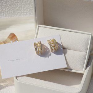 NEW 14K Gold Plated Diamond Pearl Open Hoops