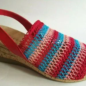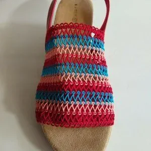 Size 9.5 Multi Color Fabric Woven Mesh Wedge Sandal Shoes