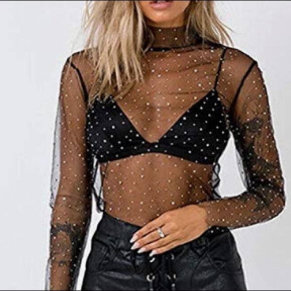 - SHEER MESH SEQUIN GLITTER TOP