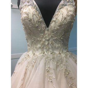 This girly-glam plunging princess wedding dress in a champagne colorway that feels like pure gold.