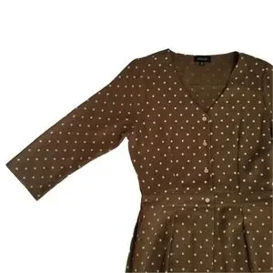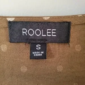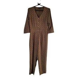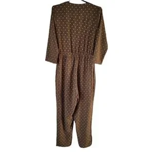 Roolee Polka Dot Jumpsuit Olive Green Button Down 3/4 Sleeve Size Small