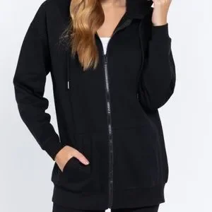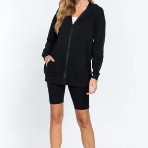 Oversized Hoodie Sweater Jacket Tunic Zip Up Inner Brush Long Sleeve Black Boyfriend Style
