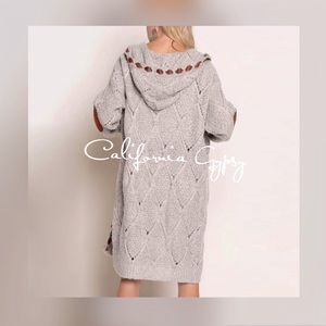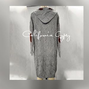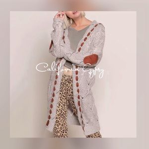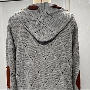 New gorgeous grey knit 3/4 hooded cardigan sweater with faux suede elbow patches and threaded brown ribbon. This is beautiful. Green and available in a separate listing. For more casual holiday chic clothing, accessories, and jewelry check out my closet. Bundle and save on shipping plus get an additional discount!๐ The more you bundle, the more you save!
