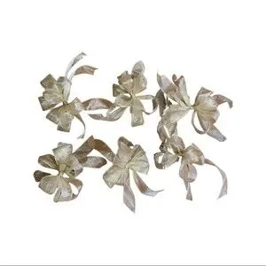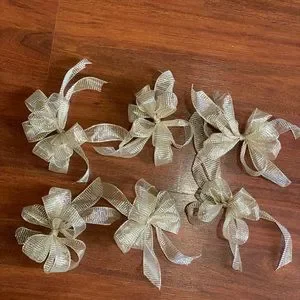 Handmade Ribbon bows set of 6 gold glitter wired ribbon striped 8x6 inch approx