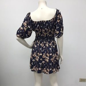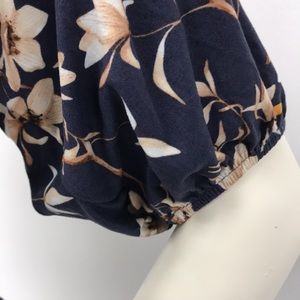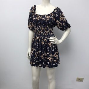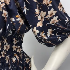 Large Navy Blue Floral Dress with Smocked Waist
