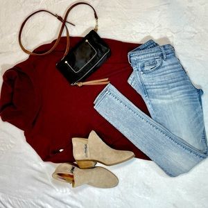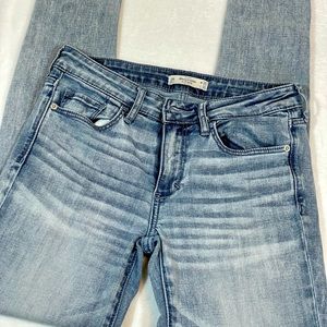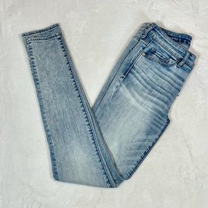 These sexy skinny jeans from Abercrombie and Fitch feature a light wash with darkened seams. Pair these with literally any top and you're gonna look good. My personal choice is a warm and cozy sweater paired with some chic ankle boots. These jeans are in very good used condition.