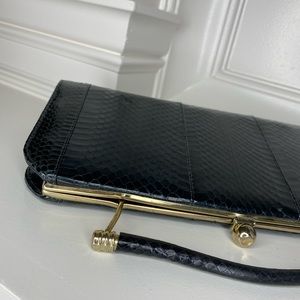 The Most Elegant Well Made Vintage genuine snakeskin versatile top handle clutch bag.