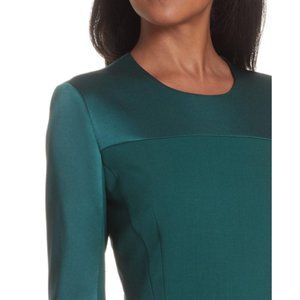 HUGO BOSS Danufa Stretch Wool Colorblock Sheath Dress In Pine Green