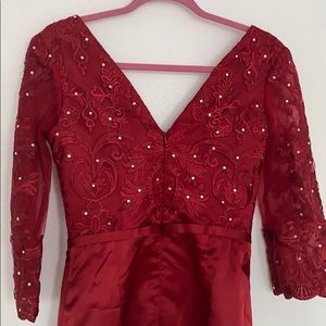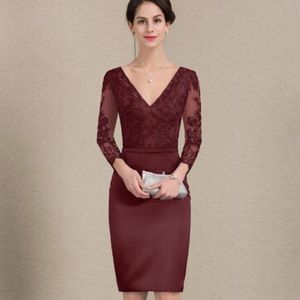 JJ's house mother of bride sheath lace satin dress