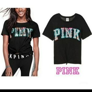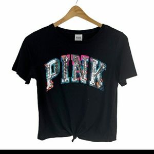 VS PINK Tropical Sequin Tie Front Tee Small