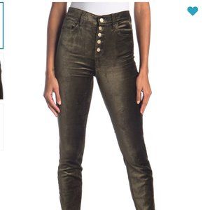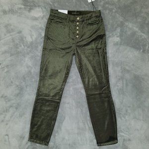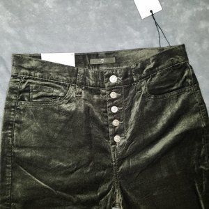 💁 New with tags. High-waisted skinnies deliver with a luxe edge via an exposed button fly and a luscious cotton-blend velveteen fabrication. Fits true to size. ✅ Size: 30/10. Color: Fatigue. Materials: 60% Cotton, 38% Rayon, 2% Spandex.