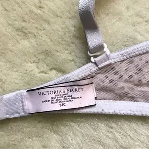 VS white lace lined demi bra. Lightly lined nude mesh bra with white lace overlay. Adjustable straps can be converted to cris cross in the back. Size 34C. Excellent condition!