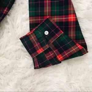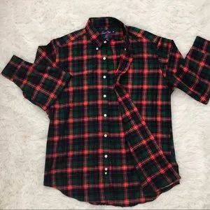 Hunt Club 100% Twill Cotton Red Green Blue Plaid Long Sleeve Button Down Shirt Medium Christmas Plaid