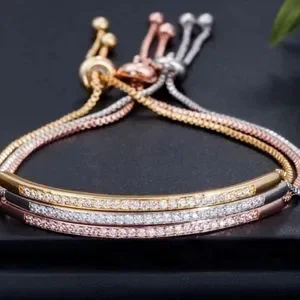 This gorgeous bracelet is high quality jewelry featuring AAAAA cubic zirconia that shines with brilliance. Bangle Bar Slide