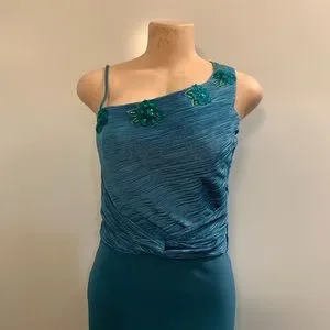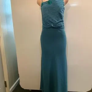 Women junior green blue sleeveless bodycon maxi dress size (M) zipper on the sid