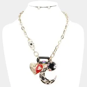 Black and Gold Boho Chain Link Style, MultiColored Dangling Crystal Rhinestone Embellished Charm Necklace Pendants Fun Fashion Statement Jewelry Set
