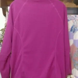 Fushia pink, full zip front, fleece activewear jacket. Two zippered pockets, logo embroidery at hemline. Size XL