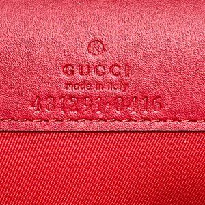 GG Supreme canvas, a material with low environmental impact, with hibiscus red leather trim
