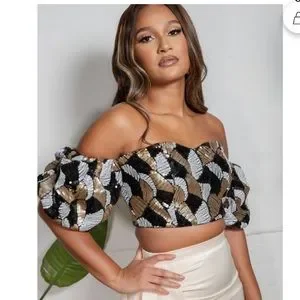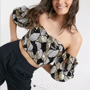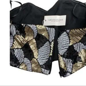 ASOS Virgos Lounge Bardot Sequin Top Gold Black Sold Out NWT UK 10