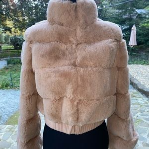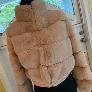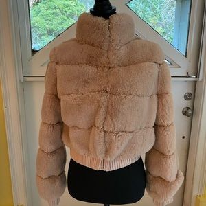Soft pink snow bunny jacket made with the very best quality faux fur. This coat has never been worn and is one of the highest quality coats I’ve seen. Absolutely stunning.