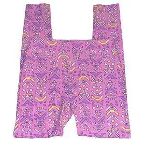 Features: pull on, stretch, multicolor, purple, yellow, pink, green, casual, comfort, everyday, geometric shapes abstract novelty print, footless, new, buttery soft