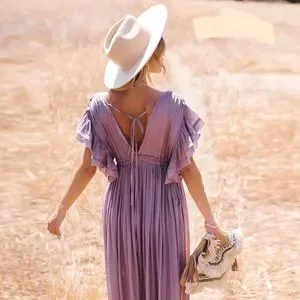 Butterfly Orchid Sheer Gauzy Boho Button Open Flutter Flare Sleeve A Line Maxi Dress. A perfect addition to your wardrobe. Perfect for layering, to wear alone or to pair with a bikini on your next vaca. Looks amazing with thick soles and flats.