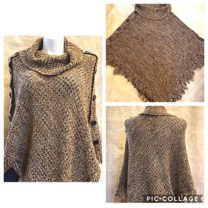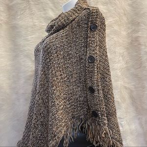 Cowl Neck Fringed Poncho