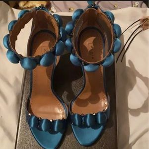 Studded pom pom strap front and ankle strap