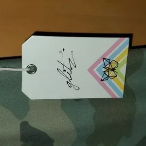Super soft top with very cute detail of ruffled sleeves and bunching down the middle front.