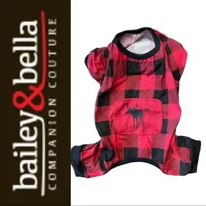 Bailey & Bella Dog Short Ted Black Plaid Moose Motif Size Medium
