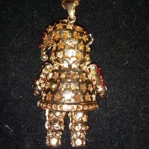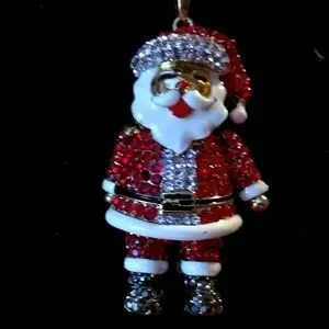 Red and White Crystal Santa Pendant Necklace with Movable Arms