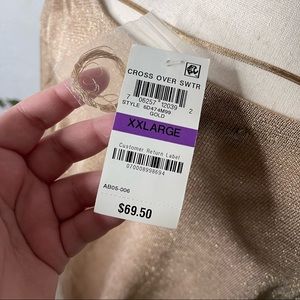 International Concepts INC Womens Gold Metallic Long Sleeve Scoop Neck Faux Wrap Top Size XXL