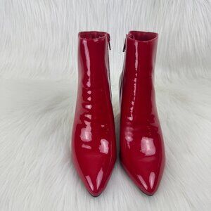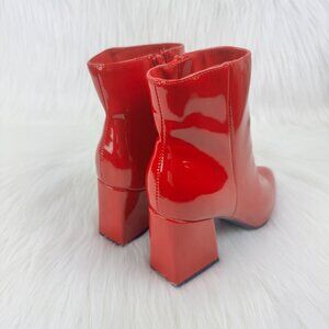 Women's Bamboo Red Faux Patent Leather Chunky Block Heel Ankle Bootie