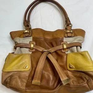 B Makowsky leather Tan Multicolored handbag Shoulder Gold Hardware A021121