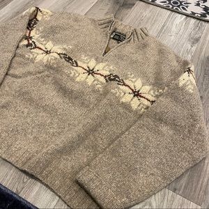 EUC Eddie Bauer Legend Hand knit 100% Lambswool Sweater Fair Isle Men Size Med