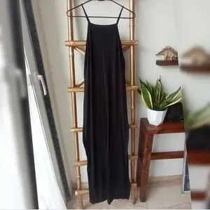 Solid black maxi dress with side slits up to calf length, halterneck dress in jersey material. Size 12. In perfect condition though worn a few times.