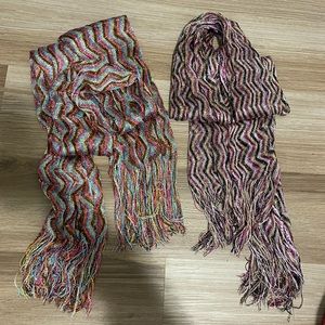 Two decorative scarves. Colorful and a tad sparkly. Cute with a sweater or peacoat. Nice way to dress up any outfit!