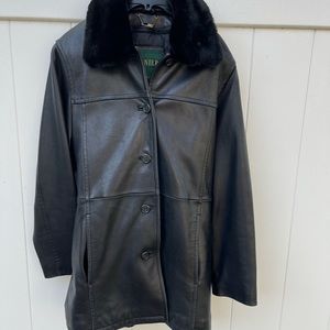 SOLD. .DANIER Buttery Soft Leather Jacket w/ Fur Collar and Belted SZ 6 - 8