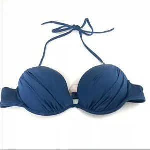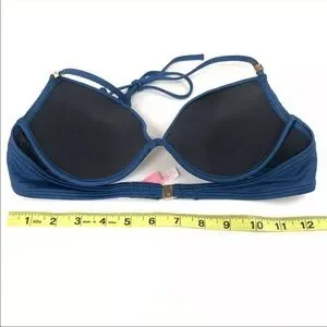 Victorias Secret Bikini Top 34B The Tease Halter Solid Blue Underwire 7DM